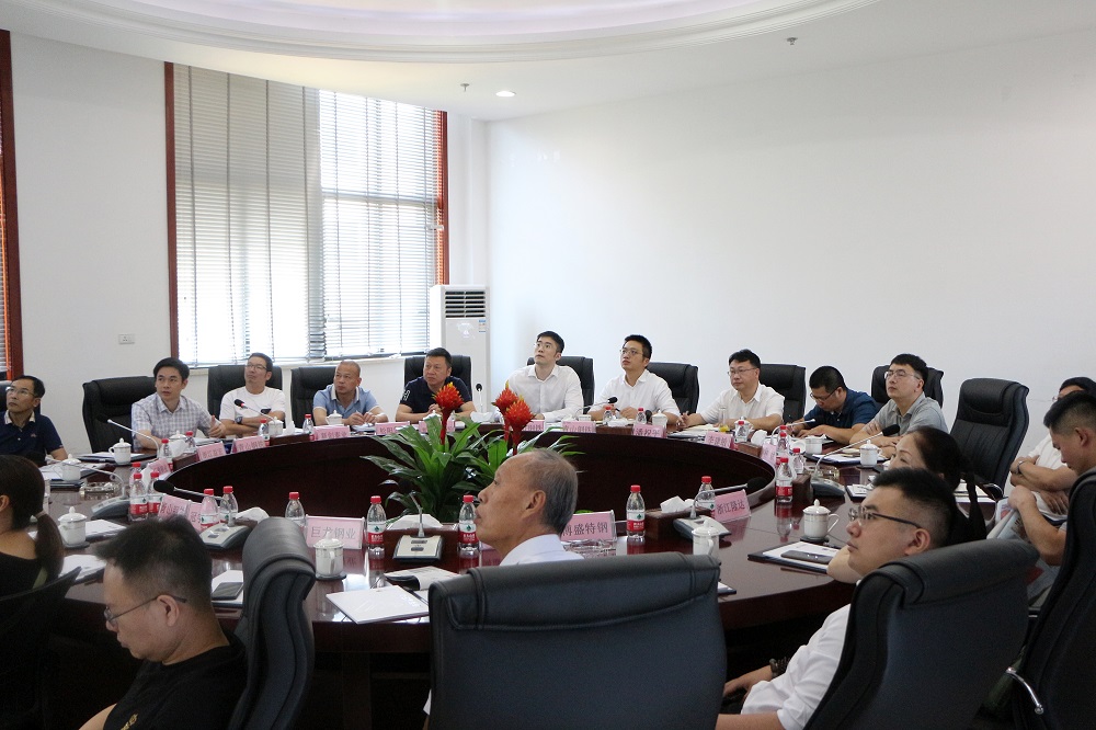 为切实加强不锈钢产业链上下游合作交流,7月29日,丽水市经信局副局长潘祝平携市经信局,松阳县经商局、县12家主要钢管企业代表到浙江pa视讯钢铁有限公司参观调研并召开对接交流会。公司董事长陈晨、董事长助理项今羽、技术副总经理季灯平、总经理助理卢剑平及公司销售部、研究院相关负责人参加座谈会。