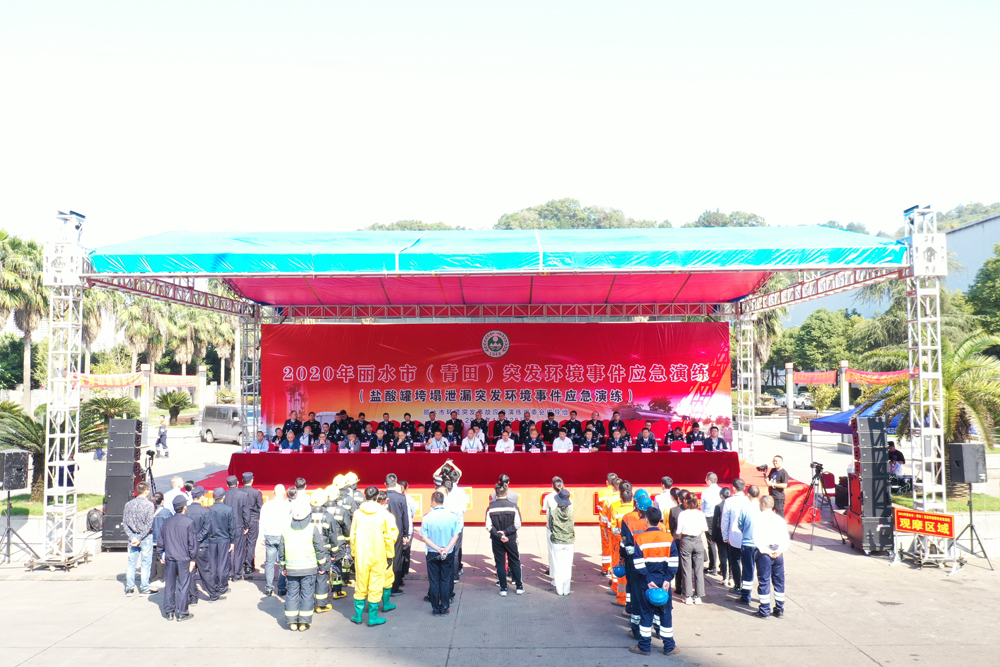 为进一步提高突发环境事件的应急处置能力,最大限度减轻环境污染造成的损失,保障环境安全,10月28日上午,丽水市生态环境局、丽水市应急管理局及青田县人民政府在浙江pa视讯钢铁有限公司开展了2020年丽水市(青田)突发环境事件应急演练。丽水市生态环境局党委书记、局长雷金松,丽水市应急管理局副局长潘新雄,青田县委常委、常务副县长陶军友等领导亲赴演练现场。