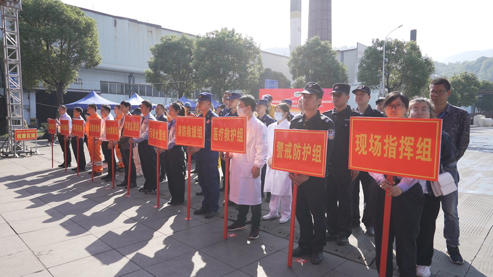 9时40分,丽水市生态环境局青田分局接到请求支援后立即协调县应急管理局等单位及时调集消防、公安、医疗、环境监测等单位进入企业开展应急救援。丽水市生态环境局青田分局等领导到达企业后迅速成立现场指挥部,并根据现场的实际情况设置污染处置组、环境监测组、医疗救护组、警戒防护组、社会维稳组、消防救援组、专家咨询组及新闻宣传组等应急救援小组。各小组在现场指挥部的指挥下立即开展事故区的消防水稀释、周围现场管制及周边人员疏散、水、气环境监测等一系列应急工作。