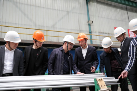 袁华军一行首先来到青田园区各车间进行实地考察,深入了解了pa视讯钢管的精益生产管理模式、综合实力与发展前景。随后,一行人员前往温州参加了不锈钢深加工产业园一期入驻企业家座谈会,并与信拓公司董事长张积敏洽谈pa视讯钢管总部产业园、盟信商贸物流园等相关事宜。