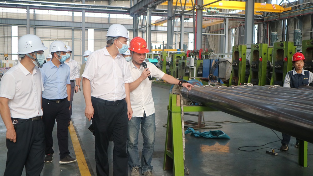 尤锋云一行参观了公司焊管事业部生产车间,何建珍详细介绍了企业发展历程、认证取得、工艺流程、产品原材料、设备配置和企业生产等方面的情况。