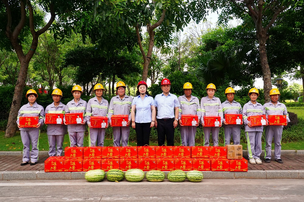 盛夏时节,烈日炎炎。连日来,持续高温“烤”验着奋斗在一线的职工们,为切实维护广大职工的健康和安全权益,近日,广东广青金属科技有限公司开展了“夏日送清凉”慰问活动,为高温酷暑仍坚守在生产一线的广大职工送去“夏日清凉”,把公司的关爱送到广大职工的心坎上。