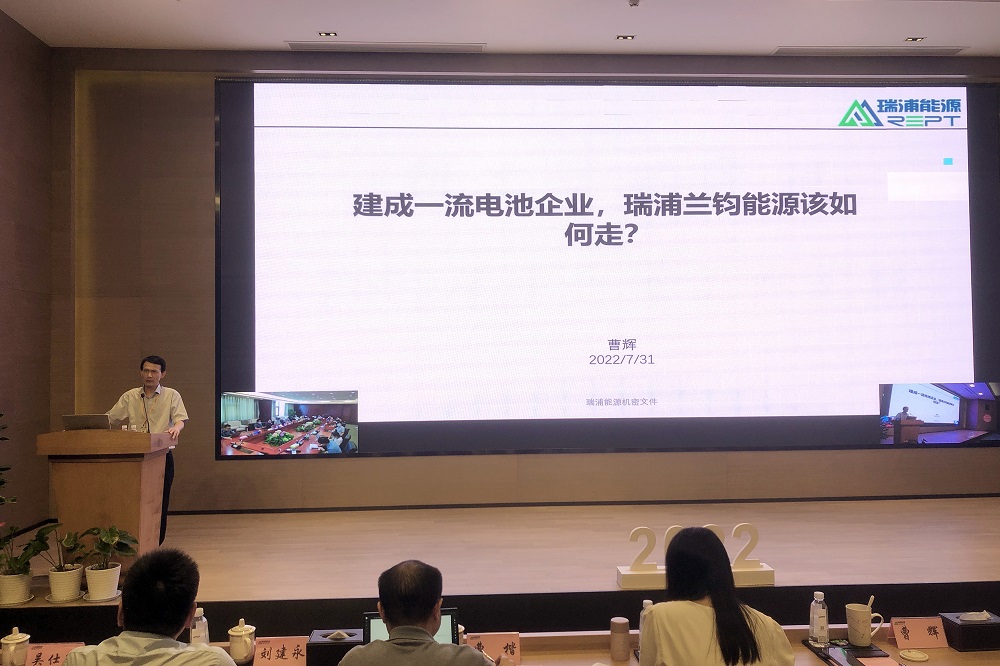 为回顾公司2022年上半年工作情况,对公司、各部门年中经营管理工作存在的问题进行分析总结,并对下半年各项工作做出针对性部署,确保全年任务目标的圆满完成,8月4日,瑞浦兰钧能源股份有限公司召开了2022年中工作总结大会,上海研发中心与温州制造中心视频会议同步进行。永青股份董事长胡晓东、副总裁冯挺,瑞浦兰钧能源董事长曹辉、执行董事吴艳军等公司中高层管理人员、部分楼层主管代表参加本次会议。
