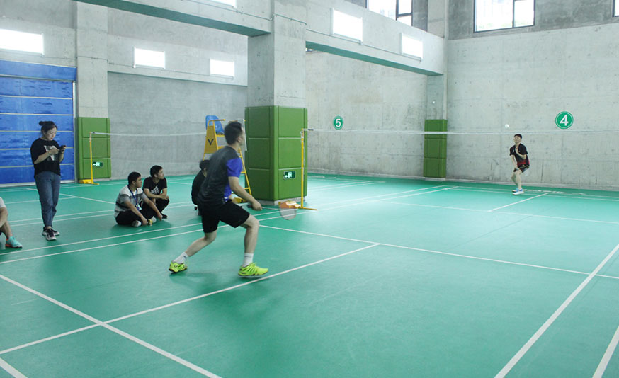 比赛中,只见球桌上精彩不断,直拍、横拍、扣球、旋转球、弧线球等精彩扣杀、绝妙回挡时时呈现。乒乓球在球桌上快速地旋转飞梭,羽毛球赛场外呐喊声和欢呼声此起彼伏,非常热闹,台球桌上选手屏气凝神一杆进洞。