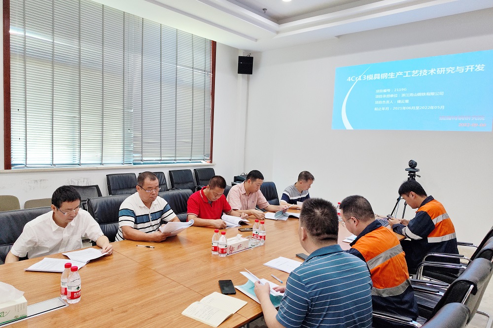 9月6日上午,由青田县科技局牵头,在浙江pa视讯钢铁会议室组织召开了县科技项目《4Cr13模具钢棒材工艺技术研究与开发》验收会议。县科技局综合科科长吴文进、县市场监督管理局工程师舒永春、县水利局高级工程师叶文刚等亲临会议现场。