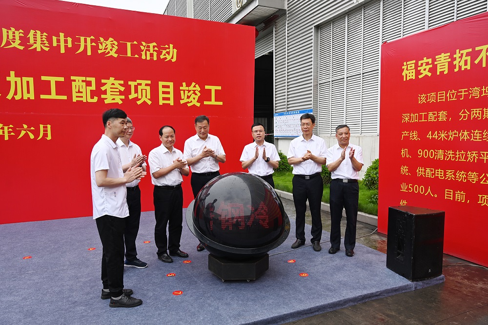 6月28日上午,青拓不锈钢冷轧及深加工配套竣工仪式顺利举行,宁德市委书记梁伟新、市长张永宁、市人大常委会主任金敏、市政协主席兰斯琦、副市长缪绍炜,福安市委书记周祥祺、市委副书记黄其山等领导亲临竣工仪式现场,青拓集团有限公司总裁陈庆科、福建青拓科技有限公司董事长项秉秋,集团发展计划部总经理邱丽平、行政总经理钟盛江等领导参加仪式。仪式由黄其山主持。