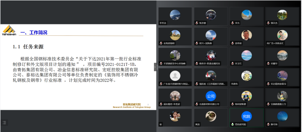 6月9日下午与会专家审定了青拓集团有限公司等单位负责制定的《装饰用不锈钢冷轧钢板和钢带》行业标准。近年来,我国不锈钢装饰领域快速发展,尤其在华南地区分布大量的不锈钢装饰板、装饰焊管生产企业,其在设备和技术方面处于较高水平,产品流向全球各地。此次标准审定增加了青拓自主研发的5个QN系不锈钢和经济型S32001牌号,并对其钢的化学元素、产品的力学性能等方面进行规定。《装饰用不锈钢冷轧钢板和钢带》行业标准的制定可以规范不锈钢装饰产品的生产要求,稳定提升产品质量,为不锈钢应用装饰行业发展提供更多的材料选择,实现扩大不锈钢应用领域的政策要求,达到研制生产绿色节能产品的发展目标。