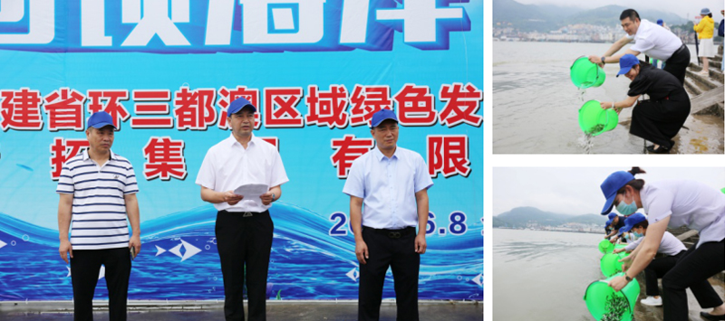 6月8日是第12个“世界海洋日”和第13个“全球海洋宣传日”,青拓集团有限公司联合福建省环三都澳区域绿色发展基金会在白马港湾坞码头开展了“回馈海洋 增殖放流”活动,福安市副市长章斌杰,省环三都澳区域绿色发展基金会理事长张宝生、副理事长谢基平,福安市海洋与渔业局局长刘智勇,市生态环境局、海洋与渔业局及湾坞镇政府领导,青拓集团发展计划部总经理邱丽平、行政总经理钟盛江等共60多人参加了此次活动,本次活动由张宝生主持。