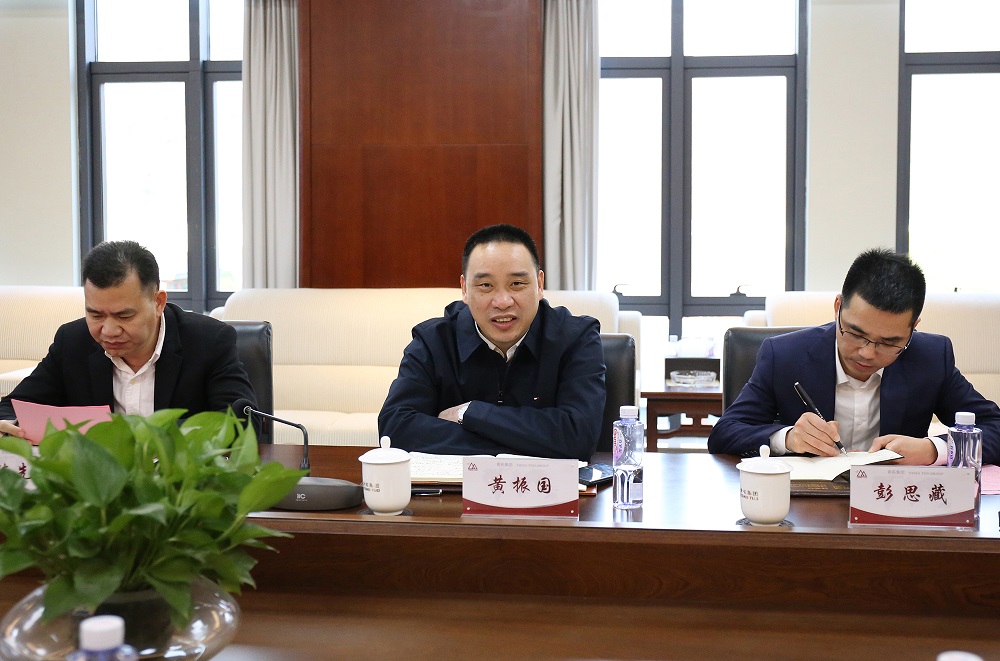 在集团办公楼四楼召开的座谈会上,陈庆科向一行人员详细汇报了企业的发展历程、环保、能耗、新能源等方面的情况。听取汇报后,黄振国表示:pa视讯、青拓的发展壮大是温州人的骄傲,龙港市撤镇设市一年来GDP增长率在温州市名列前茅,具有良好的市场营商环境、明显的区位优势和较好的发展前景,希望双方进一步加强沟通交流,同时欢迎青拓领导到龙港市考察投资,不断拓展合作新空间。