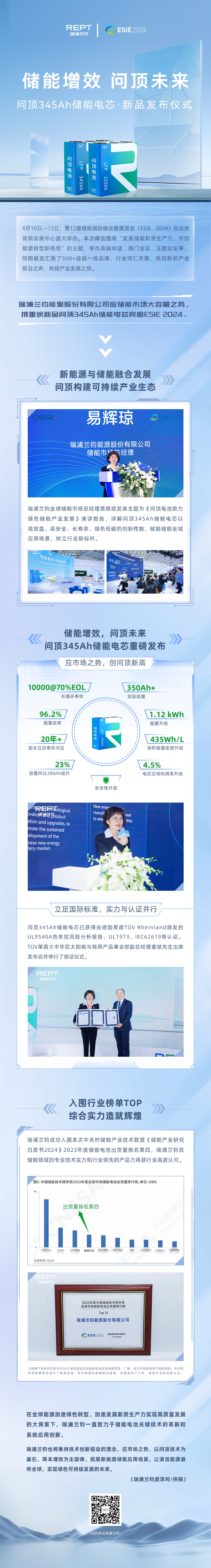 ESIE 2024问顶345Ah储能电芯发布,见证效益与低碳的 平衡